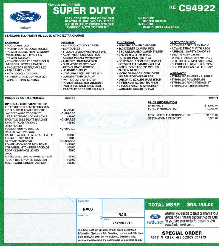 2024 six door 7 Passenger F350 Platinum
